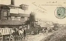La fosse d'Haveluy vers 1900. À gauche, les molettes du puits no 2 dépassent, le chevalement du puits no 1 est à droite. | |