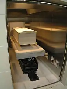 Lors d'une crémation, le four est chauffé entre 800 °C et 850 °C, généralement grâce à du gaz (propane) et plus rarement grâce à du fioul, du charbon, du bois ou de l'électricité. Celle-ci dure environ une heure trente (pour un corps de 70 kg), mais cela dépend du poids du cadavre[1].