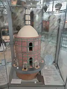 Le four comprend deux chambres de cuisson : une chambre supérieure, appelée « globe », où le « dégourdi », une première cuisson à 900 degrés, est réalisé, et une chambre inférieure, appelée « laboratoire », où une seconde cuisson dans un bain d'émail est effectuée à environ 1 400 degrés[6]. Avec la technique de la flamme renversée, le feu s'introduit d'abord dans le laboratoire, où les pièces sont disposées dans des contenants en céramique, nommés « gazettes », puis pénètre dans des carneaux disposés dans le sol du laboratoire pour atteindre le globe. La cheminée du four dispose d'un clapet qui permet de réguler le tirage[7].