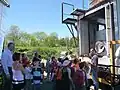 Les visiteurs du four solaire de Mont-Louis sont amenés par le guide au cœur des installations pour leur expliquer le fonctionnement et l'utilisation du four.