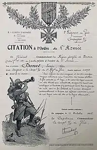 Vers la fin du conflit, le colonel Donet reçoit plusieurs citations à l'ordre de l'armée: une première du général Koenig depuis Londres, une autre du général de Gaulle, toutes deux portant attribution de la croix de guerre avec palme. Il recevra également la médaille de la Résistance avec rosette.