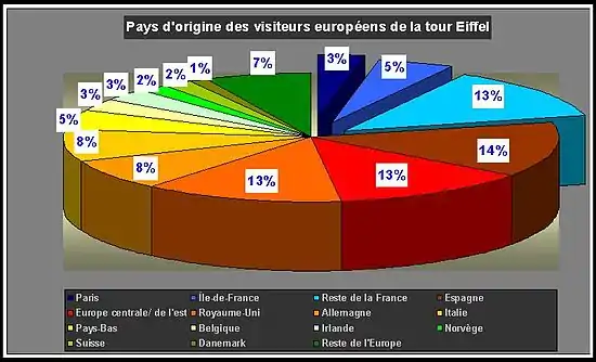 En ce qui concerne la notoriété de la tour Eiffel et le profil de ses visiteurs, la « photographie » présentée ci-dessous résulte d'enquêtes réalisées par TNS Sofres pour le compte de la SNTE (Société nouvelle d'exploitation de la Tour Eiffel), l'exploitant de l'édifice du au .