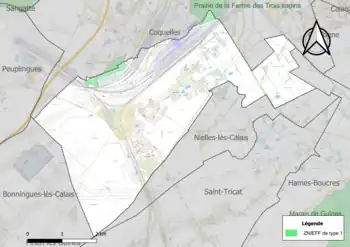 Par ailleurs la commune fait partie de l'aire d'attraction de Calais dont elle est une commune de la couronne[Note 6]. Cette aire, qui regroupe 45 communes, est catégorisée dans les aires de 50 000 à moins de 200 000 habitants[25],[26].