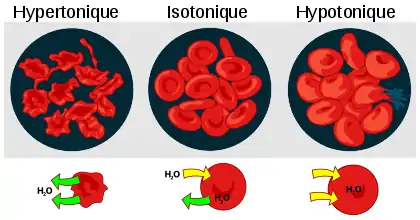 La limite de fragilité osmotique (50 %) est exprimé par rapport à 100 % d'hémolyse obtenue avec l'eau distillée (0 osmoles)[2].