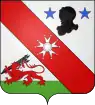 D'argent, à la bande de gueules au signe des chevaliers, accompagnée en chef d'un casque grillé de sable, taré de profil, accosté de deux étoiles d'azur, et en pointe d'un lion léopardé de gueules, regardant, passant sur une terrasse de sinople et tenant de sa patte levée cinq piques de sable, posées sur son épaule.[2] |