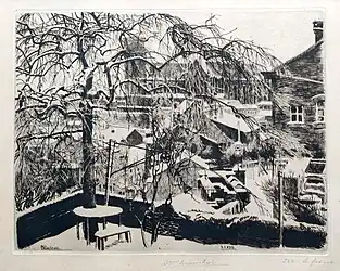 Vieilles maisons, , eau-forte, 39,5 × 29,5 cm, 1er état, Inv. Kunel no 492, collection privée.
