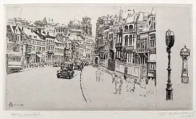 Les Quais, le soir de 1906 est une des gravures de Liège qui illustre le contrôle du clair-obscur dont François Maréchal est capable[18].