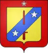 D'or à un barre d'azur chargée de deux étoiles d'argent, traversée en cœur par une épée haute de gueules, débouchante en chef ; à la bordure de gueules chargée au point du chef de l'insigne des chevaliers légionnaires[2]. |