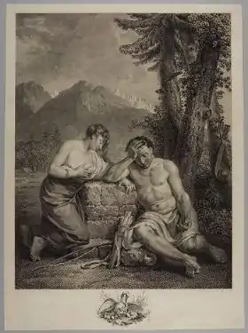 - Jean-Jacques Le Barbier, Le lévite d'Ephraïm ; Un Canadien et sa femme pleurant sur le tombeau de leur enfant, 1786.