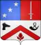 Coupé : le premier parti d'azur à trois étoiles d'argent, posées en barre, et de gueules au signe des barons tirés de l'armée ; le deuxième d'argent au chevron de gueules accompagné en chef à dextre d'une tête de lévrier contournée de sable ; à sénestre d'un cor de chasse de même et en pointe d'une grenade de gueules ; pour livrées : les couleurs de l'écu.[5]. |