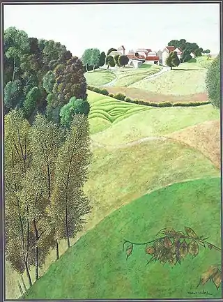 Dans un monde onirique, souvent vide d'hommes, ou du moins où les personnes sont toujours stylisées et dans une posture ou un geste immobile, il saisit l’invraisemblance, l'absurdité mais aussi la beauté de ce qui l'entoure et l'étonne. Composition de pierre, provenant des montagnes ou des immeubles, de végétaux, arbres et champs parsemant souvent le premier plan, et de ciels du plus sombre au plus rougeoyant, chaque toile se veut une reconstitution de l'harmonie plastique qui les anime.