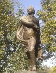 Francisco de Miranda, né le à Caracas (Venezuela) et mort le à San Fernando (province de Cadix) (Espagne), est un militaire et homme d'État vénézuélien, héros de l'indépendance de son pays. Il fut nommé généralissime et dictateur absolu de la première république vénézuélienne, le , jusqu'à sa destitution, le [2]. Il fait partie des généraux de la Révolution française, et à ce titre, il est l'un des rares étrangers et le seul Latino-Américain dont le nom est gravé sur l'Arc de triomphe place de l'Étoile à Paris. Livré par Simón Bolívar aux Espagnols, il est transféré à Cadiz à la fin de l'année 1813 et emprisonné enchaîné à la citadelle de La Carraca où il meurt de la fièvre quelques mois plus tard.