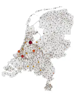 La capitale néerlandaise d'Amsterdam arrive en quatrième place d'après une étude effectuée par le OIS en 2013[44]. Comme et en même temps qu'en Belgique, la première génération d'allochtones marocains est constituée d'individus venus dans les années 1960 et 1970 pour répondre aux appels de main-d’œuvre, et de leur famille dans le cadre de la politique du regroupement familial. Le recrutement de travailleurs marocains s'est poursuivi jusqu'en 1973. Après les années 1980, un nombre important de Marocains venus du Nord du Maroc, plus particulièrement de la région du Rif ira s'installer à Amsterdam. Dans les années 2000, on comptera dans d'autres grandes villes également un grand nombre de Marocains, notamment à Rotterdam, Utrecht et La Haye. La ville d'Amsterdam comptait au début de 2013 un nombre d'environ 75 700 Marocains, soit la plus grande communauté étrangère de la ville, suivi des Surinamais (66 190), des Turcs (42 638) et des Indonésiens (25 792). Aujourd'hui, un nombre de plus de 90 000 est estimé selon certains médias néerlandais[45].