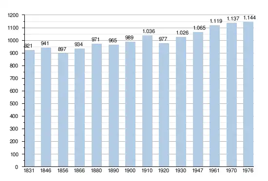 - Sources : INS, Rem. : 1831 jusqu'en 1970 = recensements, 1976 = nombre d'habitants au 31 décembre.