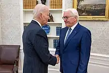 Frank-Walter Steinmeier (/ˈfʁaŋkˌvaltɐ ˈʃtaɪ̯nˌmaɪ̯ɐ/[alpha 1]), né le à Detmold (Rhénanie-du-Nord-Westphalie), est un homme d'État allemand, membre du Parti social-démocrate d'Allemagne (SPD) et président de la République fédérale d'Allemagne depuis .