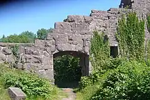 Les ruines de ce château n'offrent plus qu'une vaste enceinte vide de forme rectangulaire, entourée de murs d'une hauteur de 6 à 10 mètres. La porte est située du côté nord et fait face à la plaine d'Alsace. Du côté du Val de Villé, donc au nord, se trouve le donjon érigé vers 1250[8], relativement bien conservé, dans lequel on peut encore voir une voûte de briques. Cette tour a une hauteur de 11 mètres et ses murs ont une épaisseur de 4 mètres[note 6]. Dans l'intérieur de l'enceinte, sur le côté sud qui fait face au val d'Argent on peut voir, adossé au mur, un escalier en pierre très bien conservé de 20 à 25 marches qui conduisait vraisemblablement au premier étage. Non loin de cet escalier et du même côté, près de la porte d'entrée, se trouve à fleur de terre une petite croisée à moitié cachée par les décombres qui en obstruent l'entrée et par laquelle on jouit d'une jolie vue sur la vallée de la Lièpvrette.