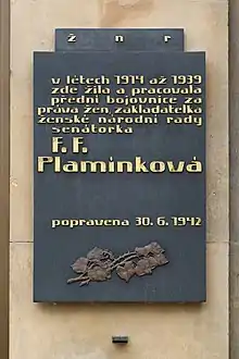 Františka Plamínková, née le à Prague (en Autriche-Hongrie) et morte le au champ de tir de Kobylisy, dans la même ville (dans le Troisième Reich), est une féministe et femme politique tchécoslovaque.