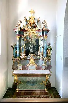 Kern découvre également l'autel de la chapelle de l'infirmerie de l'abbaye Saint-Pierre dans l'église paroissiale de Tous-les-Saints (de) à Wieden.