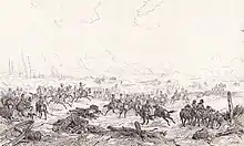 Le 18 avril 1797, les 38 000 soldats français de l'armée de Sambre-et-Meuse, commandés par le général Hoche, attaquèrent par surprise les 21 000 hommes de Werneck lors de la bataille de Neuwied[8]. S'étant aperçu la veille qu'une division française sous les ordres du général Championnet menaçait l'aile droite de son dispositif, Werneck avait prélevé des troupes sur son flanc gauche, dirigé par le général Kray, afin de renforcer sa droite. Aussi, lorsque les divisions Grenier et Lefebvre commencèrent à franchir le Rhin à 3 h du matin le 18 avril, le commandant en chef de l'armée autrichienne fut pris au dépourvu et dut rappeler en catastrophe les hommes de Kray sur son aile gauche. Celle-ci fut culbutée par Lefebvre tandis que Grenier parvint non sans difficulté à se rendre maître des redoutes érigées par Kray à Heddersdorf[9]. Après un combat acharné, les troupes autrichiennes furent contraintes d'abandonner le terrain, perdant 1 000 tués ou blessés, 3 000 prisonniers, 24 pièces d'artillerie, 60 wagons et cinq drapeaux alors que les pertes des Français ne se montaient qu'à environ 2 000 hommes[8].