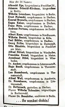 - Depuis 1992, l’une des plaques du mémorial en souvenir des 96 députés du Reichstag assassinés par les nationaux-socialistes mentionne son nom, à Berlin, près du Reichstag.