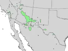 En Arizona, l'aire de répartition de Fraxinus velutina est centrée sur le Mogollon Rim, du nord-ouest dans les canyons nourriciers du Grand Canyon du sud de l'Utah et du Nevada, jusqu'aux Montagnes Blanches (Arizona), dans la même zone montagneuse de l'ouest du Nouveau-Mexique, puis vers la vallée du Rio Grande au sud jusqu'à Trans-Pecos au Texas. En Arizona et dans le nord de Sonora, il se trouve également dans les Sky islands, comme l'archipel Madrean, et se trouve dans le centre-sud de l'Arizona, dans les montagnes du désert de Sonora. Des populations dispersées se trouvent vers l'est à travers les régions du désert de Chihuahua de Chihuahua, Coahuila et Nuevo León[4].