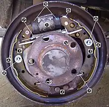 - des actionneurs : une ou deux cames pour pousser les mâchoires sur le tambour[N 1] ou des pistons pour les freins à commande hydraulique ;