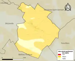 Le retrait-gonflement des sols argileux est susceptible d'engendrer des dommages importants aux bâtiments en cas d’alternance de périodes de sécheresse et de pluie. 84 % de la superficie communale est en aléa moyen ou fort (52,8 % au niveau départemental et 48,5 % au niveau national). Sur les 90 bâtiments dénombrés sur la commune en 2019, 90 sont en aléa moyen ou fort, soit 100 %, à comparer aux 70 % au niveau départemental et 54 % au niveau national. Une cartographie de l'exposition du territoire national au retrait gonflement des sols argileux est disponible sur le site du BRGM[16],[Carte 2].