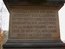 - (de) Cet article est partiellement ou en totalité issu de l’article de Wikipédia en allemand intitulé « Friedrich Ludwig von Sckell » (voir la liste des auteurs).