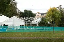 Préparatifs de la Frieze Art Fair, Regents Park .Chapiteaux en cours de montage sur Marylebone Green, un quartier de Regents Park, début octobre 2009.