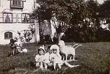 Photographie de Fritz de Brouckère en train de peindre devant sa maison "Bremhuis"