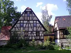 - (de) Cet article est partiellement ou en totalité issu de l’article de Wikipédia en allemand intitulé « Frohnsdorf » (voir la liste des auteurs).