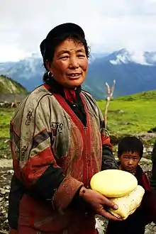 La fabrication de fromage sec et demi-sec à partir du babeurre est également pratiquée sur le plateau tibétain mais la production de fromage fermenté semble une spécificité du système d’élevage de l’est du Bhoutan. Ce fromage après égouttage est fourré dans un sac de peau. La maturation peut durer un an.