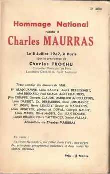 - P. Taittinger, "Il faut constituer le Front national", La Liberté, 24 janvier 1933