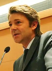 Après avoir rejeté la stratégie du front républicain pendant les élections municipales[98], Alain Juppé déclare en octobre 2014, alors candidat à la primaire organisée par son parti pour l'élection présidentielle de 2017, que face à un candidat du Front national, il accepterait un front républicain à condition que le candidat de gauche soit « un social-démocrate et pas un rouge »[99]. À l'occasion de l'élection législative partielle de 2015 dans la quatrième circonscription du Doubs, il appelle à voter au second tour pour Frédéric Barbier, candidat PS face à Sophie Montel, la candidate FN, soulignant que cette dernière « croit, entre autres choses, "en l'évidente inégalité des races" »[100]. À gauche, l'automaticité du front républicain est remise en cause par les députés PS Razzy Hammadi et Yann Galut[101], ainsi que par Jean-Luc Mélenchon[102]. D'après Joël Gombin, « il semble que plus un acteur politique [de gauche] se situe de manière critique par rapport à la majorité socialiste, moins l'appel au front républicain aille de soi »[8].