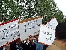 Sur neuf candidats éliminés au premier tour de l'élection présidentielle de 2017 qui voit se qualifier Marine Le Pen et Emmanuel Macron, seuls François Fillon et Benoît Hamon appellent à voter pour ce dernier[137] — ce dernier lance cette consigne immédiatement après l'annonce des résultats, alors que Lionel Jospin avait attendu cinq jours en 2002 avant d'appeler à voter pour Jacques Chirac[138] — ; Nicolas Dupont-Aignan conclut quant à lui un « accord de gouvernement » avec Marine Le Pen[139]. Le bureau politique de LR adopte une position de compromis appelant à « voter contre Marine Le Pen pour la faire battre »[140]. Devant ces consignes, Emmanuel Macron indique qu'il ne croyait pas « que se constituerait un front républicain »[137]. Alors que la plupart des personnalités politiques de droite et de gauche appellent à faire barrage au parti d'extrême droite, plusieurs refusent, pour des raisons différentes, le « front républicain », à droite (Nadine Morano, Henri Guaino, Éric Ciotti, Georges Fenech[141], Guillaume Larrivé[142], Christine Boutin, Jean-Frédéric Poisson, Sens commun, La Manif pour tous[143], le CNIP[144]) ou à la gauche radicale et l'extrême gauche (Nathalie Arthaud, Philippe Poutou[145],[146], Charlotte Girard, coresponsable du programme de Jean-Luc Mélenchon, alors que ce dernier refuse de faire une différence claire entre les deux finalistes tout en précisant qu'il ne faut pas voter pour le FN)[147],[148],[149]. L'ancienne ministre de Jacques Chirac Françoise Hostalier déclare pour sa part qu'elle votera Marine Le Pen[150], tout comme l'ancienne ministre de Nicolas Sarkozy Christine Boutin[151], la gaulliste historique Marie-France Garaud[152], le président du courant La Droite libre Christian Vanneste[153] ou encore le président du CNIP Bruno North[144].