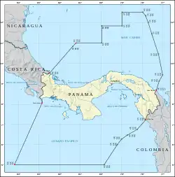 - À partir du point situé dans les coordonnées 5° 00′ 00″ N, 79° 52′ 00″ O il est suivi de son parallèle au point de coordonnées 5° 00′ 00″ N, 84° 19′ 00″ O où la délimitation commence avec le Costa Rica.