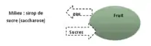 Le principe utilisé est le phénomène d’osmose qui va permettre à l’eau de passer au travers des parois cellulaires et les sucres de pénétrer dans le fruit.