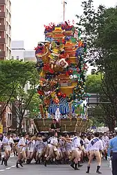 Le festival de Yamakasa qui a lieu chaque année au mois de juillet pendant deux semaines est le plus ancien festival de Fukuoka, puisqu'il existe depuis plus de 700 ans. Des équipes d'hommes (les femmes ne sont pas admises, excepté les petites filles) représentant plusieurs quartiers de la ville, font une course contre la montre sur un anneau de course, portant sur leurs épaules des chars pesant plusieurs milliers de livres. Les participants sont tous revêtus du shimekomi (appelé fundoshi dans le reste du pays), à savoir le pagne porté traditionnellement par les sumotoris. Pendant les deux semaines que dure le festival, chaque jour est marqué par un événement particulier et des courses d'entraînement, mais le point culminant est la course officielle qui se tient le dernier matin avant l'aube. Des dizaines de milliers de personnes attendent dans les rues pour encourager les équipes. Pendant la période du festival, on peut ainsi voir des hommes à travers toute la ville vêtus de la longue veste happi ornée des signes distinctifs de leur équipe, portant également les geta. Ces vêtements sont portés fièrement et n'apparaissent pas comme étant déplacés même pour des occasions formelles, telles que noces, cocktails, ayant lieu pendant le festival.