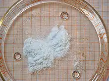Ce fulminate se présente sous la forme d'une poudre gris-blanchâtre insoluble dans l'eau.