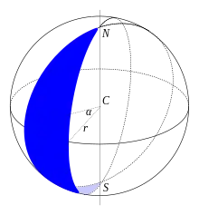 Un fuseau sphérique est la portion de sphère interceptée par un dièdre dont l'arête passe par le centre du cercle.