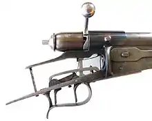 - La boîte de culasse avec coin et appareil de détente.