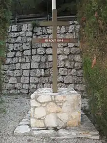 - Auguste Roux : né le au hameau de La Bâtie à Peyroules (Alpes-de-Haute-Provence) (anciennement Basses-Alpes). Cultivateur à La Bâtie. Membre de l'Organisation de résistance de l'armée (ORA). Dénoncé à la police allemande pour détention d'armes. Il est arrêté par la Milice au cours des obsèques d'un résistant au Logis du Pin (Alpes-Maritimes). Une mitrailleuse est trouvée à son domicile. Il est emmené aux Nouvelles Prisons de Nice et est interrogé. Il n'est officiellement identifié que le par un jugement.