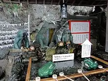 Dans le sanctuaire shinto de Futami Okitama-jinja (二見興玉神社) qui se trouve face à celui de Meoto iwa, les shintoïstes vénèrent le dieu Saruta-hiko. Okitama est considérée pour être la porte du palais du dieu de la mer et une sorte de yorishiro afin que le soleil kami puisse entrer dans le monde. Des centaines de grenouilles ornent le sanctuaire dédié au mariage et au bonheur conjugal[4].