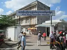 Le Kampuchéa démocratique ne compte officiellement pas de prisons. Le pays se couvre néanmoins de « centres de rééducation », souvent installés dans d'anciens temples ou d'anciennes écoles. Jusqu'en 1976, la fonction rééducative semble avoir été relativement prise au sérieux, et 20 à 30 % des détenus finissent par être libérés. Ensuite, leur situation empire nettement. Les Cambodgiens peuvent être arrêtés sous le moindre prétexte, allant du vol (ce qui inclut le chapardage ou la cueillette de fruits pour échapper à la faim) aux propos « subversifs », en passant par les simples manifestations d'impatience, les relations sexuelles hors mariage ou une simple origine sociale « impure ». L'usage de la torture est généralisé. Le centre de détention le plus connu est la prison de Tuol Sleng, connu sous le nom de code S-21. Ancien lycée, Tuol Sleng est placé directement sous le contrôle du « Centre » — soit du Parti communiste du Kampuchéa — et placé sous la responsabilité de Kang Kek Ieu (alias Douch). En tant que prison du comité central, S-21 accueille tout particulièrement les anciens cadres khmers rouges disgraciés : entre 14 000 et 20 000 personnes environ, dont quelque 1 200 enfants, y trouvent la mort, avec parfois plusieurs centaines d'exécutions par jour[57]. Seules six ou sept personnes survivent à S-21, sauvés par leurs talents, tels que la sculpture ou la peinture. À leur arrivée en 1979, les Vietnamiens découvrent à Tuol Sleng les corps d'une cinquantaine de prisonniers, que les Khmers rouges ont exécutés avant de prendre la fuite[58].