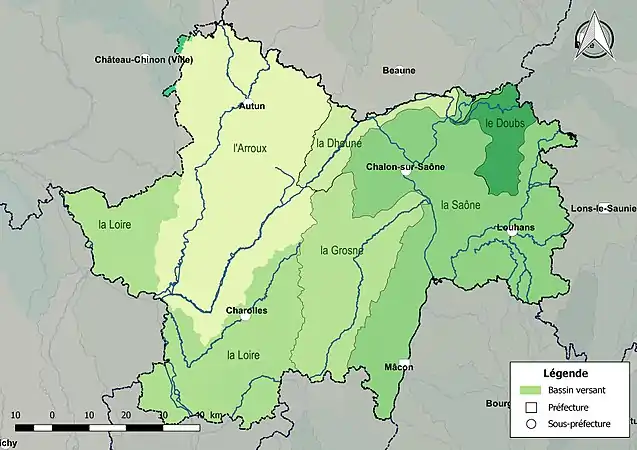 La Saône-et-Loire se situe dans le centre-est de la France. Il est bordé par les départements de la Côte-d'Or, du Jura, de l'Ain, du Rhône, de la Loire, de l'Allier et de la Nièvre