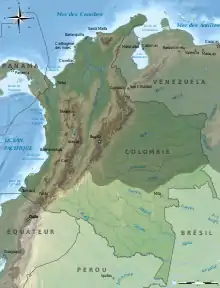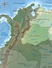 La Colombie est un pays situé dans le coin nord-ouest de l'Amérique du Sud. Dans le sens des aiguilles d'une montre, en commençant par le nord, il est entouré par la mer des Caraïbes (mer bordière de l'océan Atlantique nord), le Venezuela, le Brésil, le Pérou, l'Équateur, l'océan Pacifique nord et le Panama, qui le relie à l'Amérique centrale. Bogota en est la capitale.