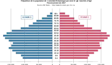 La population de la Colombie-Britannique était estimée à 4 413 973 habitants au . Avant l'arrivée des Européens, la province était habitée par des populations amérindiennes. Leurs descendants sont aujourd'hui estimés à 4,5 % de la population totale. Près de 10 % de la population est d'origine chinoise.
