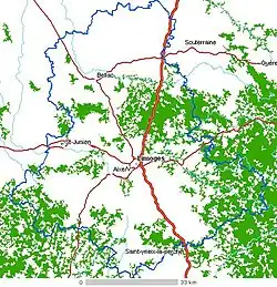 - Principales villes (du sud-ouest vers l'est) : Châlus, Saint-Yrieix-la-Perche, Châteauneuf-la-Forêt, Eymoutiers, Saint-Léonard-de-Noblat, Ambazac, Bessines-sur-Gartempe
