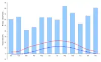 Le climat du Grand-Duché est de type océanique dégradé. On y relève une température moyenne annuelle de l'ordre de 9 °C[3]. On n'est plus dans le climat océanique typique de Belgique ou du nord-ouest de la France. La barrière des Ardennes favorise des influences déjà plus continentales. Comme le pays jouit d'un climat tempéré, les hivers sont relativement doux, les étés agréables. Le total des précipitations est assez élevé.