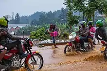 La Rwanda comprend deux bassins hydrographiques qui se partagent ses eaux. Le bassin du Congo draine à l'Ouest 33% du territoire et 10% des eaux. Sur la partie Est, le bassin du Nil draine 67% du territoire et 90% des eaux par la Nyabarongo et la Kagera[2].